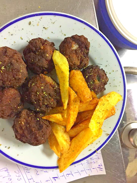 μπριζόλες , ο αλανιάρης κόκορας και τα πεντανόστιμα κεφτεδάκια του . Θα συνοδέψετε